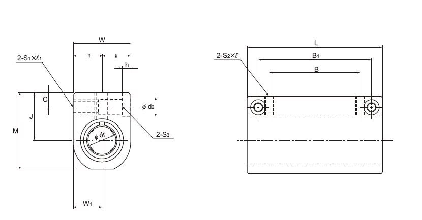 | Model No. | Outer dimensions | LM casing dimensions | Model No.of Linear Bushing to be combined |