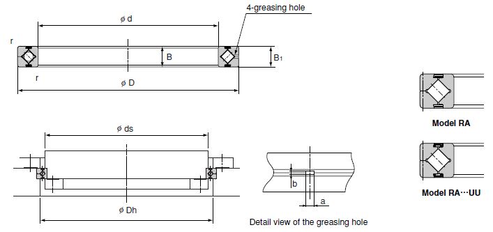 | Model | Nominal shaft diameter (mm) | Width of ring (mm) | Seals*1 | Radial clearance*2 |