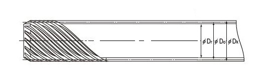 Outer diameterDk Effective diameterD0 Thread minor diameterDr LeadR Lead angleα Threaded groovesZ