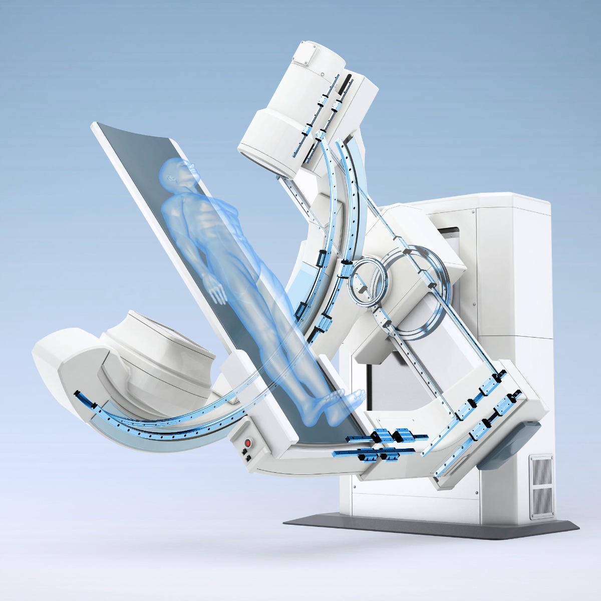 THK’s LM Guides and Cross-Roller Rings enable smooth, precise movement of X-ray receptors, allowing machines to capture images from any angle while reducing vibrations and noise that could disturb patients.