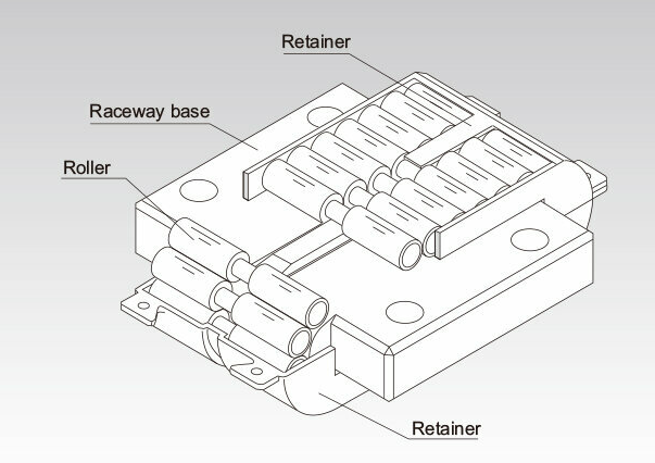 LM Roller's design prevents skewing with central roller guides on the retainer and raceway base. This self-correcting structure maintains accuracy despite mounting errors and enables versatile installation options while preserving performance.